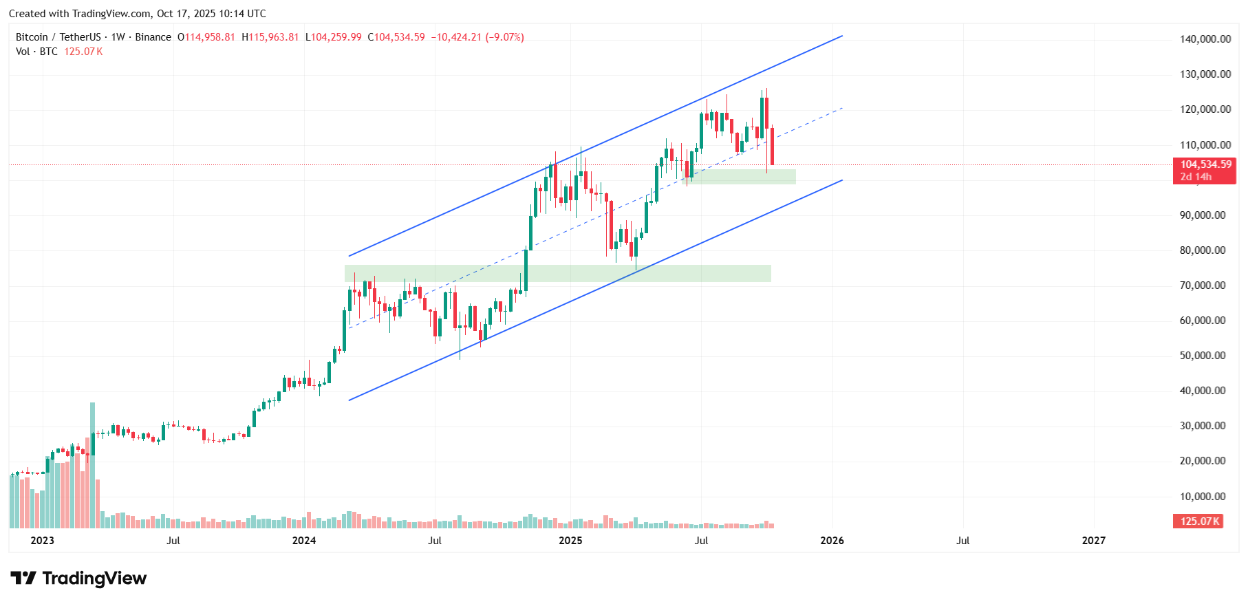 همانطور که در تصویر مشاهده می کنید بیت کوین در یک کانال صعودی بلند مدت قرار گرفته،که بارها و بارها به کف کانال واکنش نشان داده،که با هر واکنش به کف کانال توانسته سقف بالاتری را ثبت کند،که در حاضر در یک محدوده ی حمایتی فوق العاده مهم هستیم،که سفارش های زیادی در این محدوده قرار دارد،که محدوده ی ۹۸ تا ۱۰۱ هزار دلار حمایت کلیدی بیت کوین است که میتواند روند کلی مارکت را برای کوتاه مدت مشخص کند.